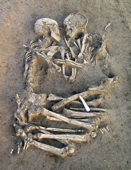 Leticia, whilst I don’t really want to contradict you or Min on this, I feel I have to point out that one perfectly good reason these skeletons might be hugging is if they were a couple who loved one another in life. If they died together, they may have been deliberately arranged in this manner by their relatives when they were buried.